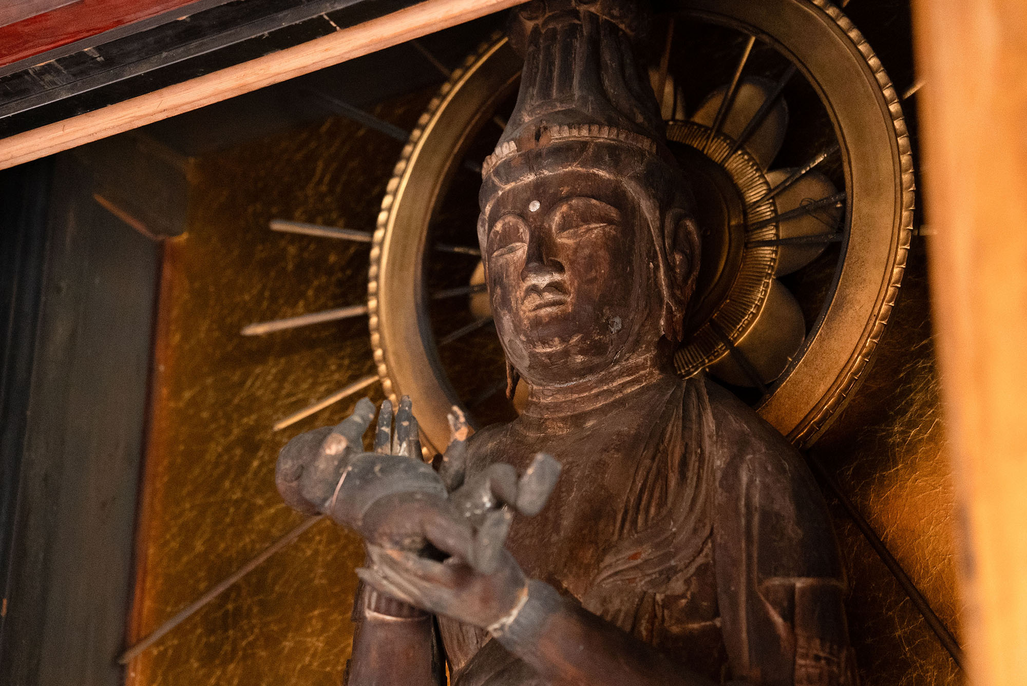 寺伝では快慶作とされ、北条政子の念持仏とされる阿弥陀如来立像(鎌倉時代)、赤ん坊を抱く珍しいお姿の子安観音立像(平安時代)、さらに特別に木心乾漆菩薩立像の残欠(奈良時代、奈良市指定)もご覧いただきます。